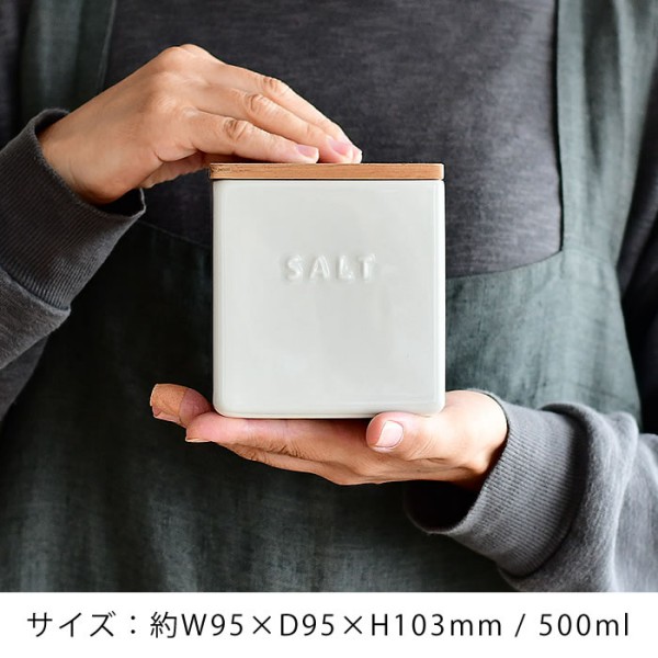 ※一部予約※ 角形キャニスター ( BS01 )【 SALIU 】木蓋 角型 保存容器 500ml 調味料入れ 調味料 収納 調味料ポット 陶器 容器 調味料ボトル 砂糖 塩 入れ物 砂糖入れ 塩入【B倉庫】