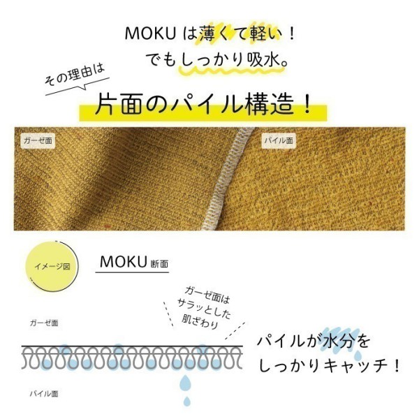 - mokuタオル大好きです。吸収力が凄いし、かさばらないから荷物量が減ってとても良い感じです。届くのも早くて嬉しかったです。ありがとうございました♪