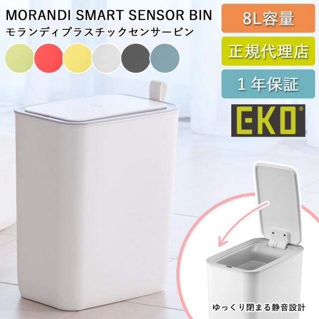 ゴミ箱 EKO 8リットル 自動開閉 モランディ プラスチックセンサービン 8L EK6287-51-80 【送料無料】ベルト付き 持ち運べる ふた付き おしゃれ かわいい スリム ごみばこ 静音 省スペース ダストボックス 台所 リビング 1年保証 EKO JAPAN 正規代理店 agesugi_sis