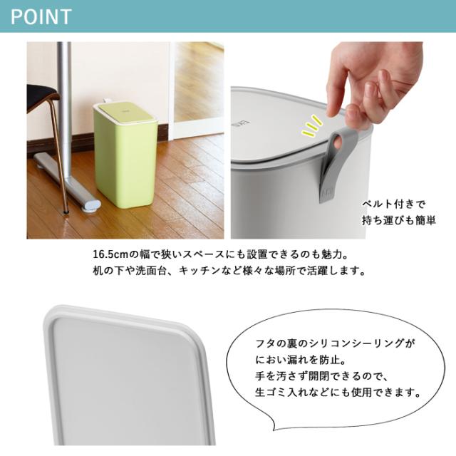 コンセント不要の電池式、フタ裏のシリコンシーリングでにおい漏れも防止できるため、