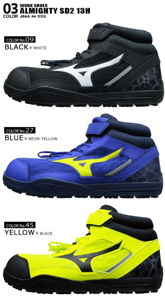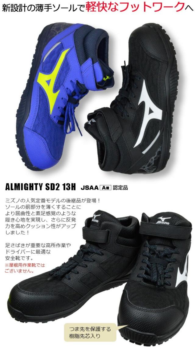 安全靴 ミズノ スニーカー オールマイティ SD2 13H F1GA2307 ミッドカット ミドルカット ハイカット MIZUNO メンズ レディース JSAA A種 通気性 耐油 屈曲 軽量