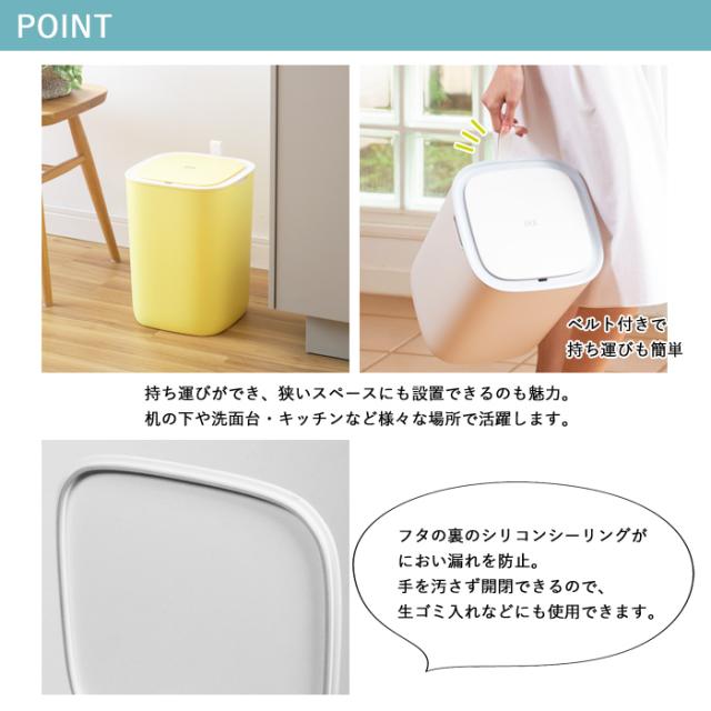 コンセント不要の電池式、フタ裏のシリコンシーリングでにおい漏れも防止できるため、