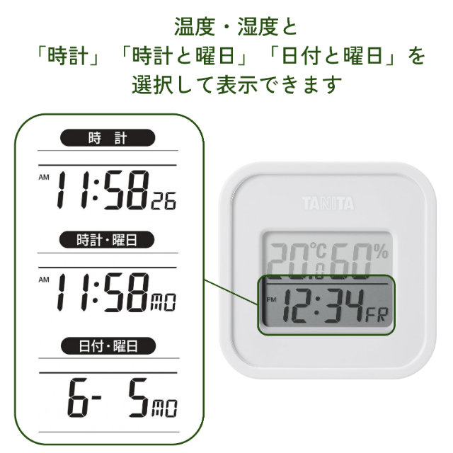 - 大きさ良し 文字わかりやすい 温度 湿度 時間が見やすくコンパクトで 私が使っていて良かったので 高齢の親と子どもが産まれた娘に それぞれプレゼントしました