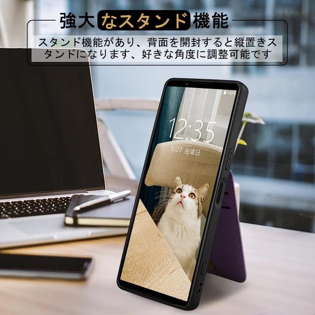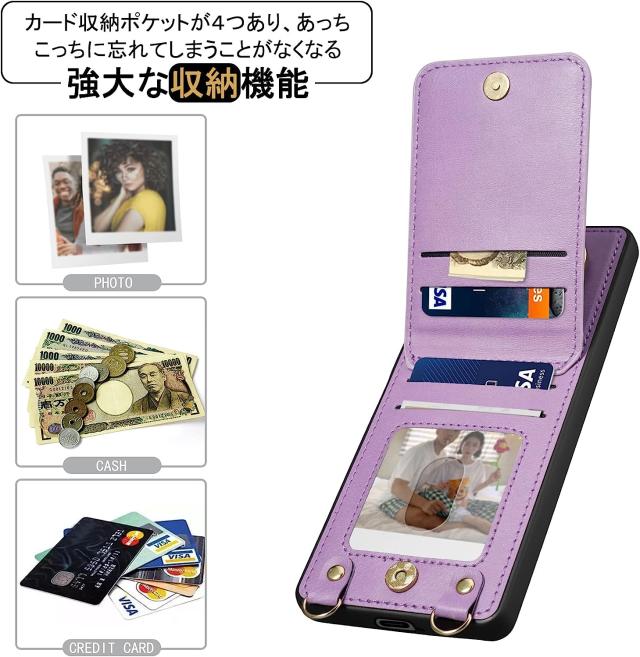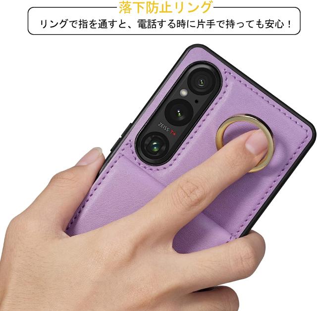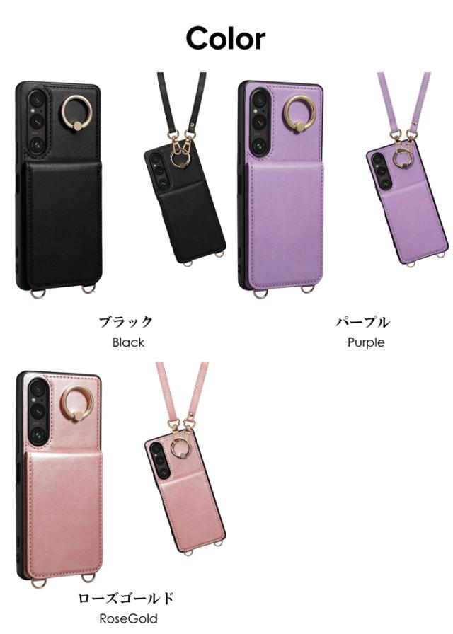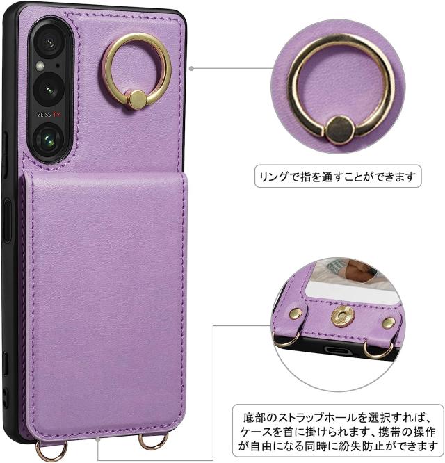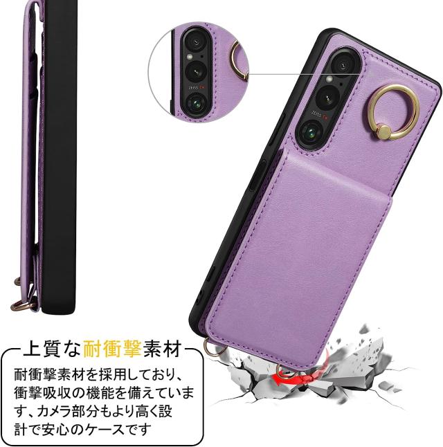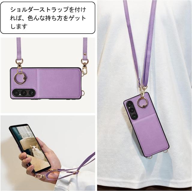 Xperia1 V ケース PUレザー ショルダー ストラップ付き 背面カード収納 耐衝撃 スマホショルダー カメラ保護 Sony Xperia 1 V SO-51D SOG10 傷つけ防止 スマートフォン スタンド機能 ソニー エクスペリア1 マーク5 カバー スマホケース スマホカバー simフリー