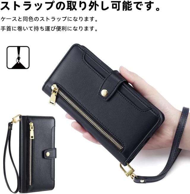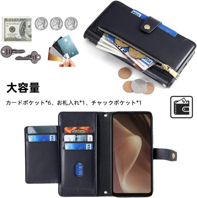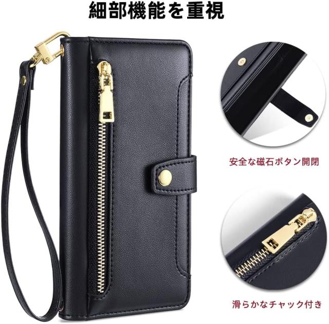 収納力抜群でカード収納が沢山あります。ファスナー式の小銭入れ、窓口式のカード入れ、カードスロット複数付き、それにピタッと閉じるマグネット式の留め具とスナップ式のプリップにより、カードを完全に保護します。銀行カード、交通カード、ICカードなどのカード類、名刺、定期券、小銭などを入れて収納でき、ケースと財布一体型の大収納のデザインで、ちょっとした買い物や散歩に出かけるときは、このスマホケースを持っていけば十分です。
