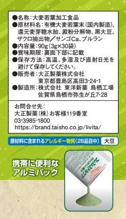 商品名 大正製薬 コレス&ミドルケア青汁 30日分 30袋 機能性表示食品 リビタ 容量 30日分 30袋 原材料名 有機大麦若葉末(国内製造)、還元麦芽糖水飴、澱粉分解物、黒大豆、ザクロ抽出物/サンゴCa、プルラン アレルギー特定原材料 ー 賞味期限 商品の発送時点で、180日以上あるものをお届けいたします 保存方法 常温 届出表示 機能性表示食品