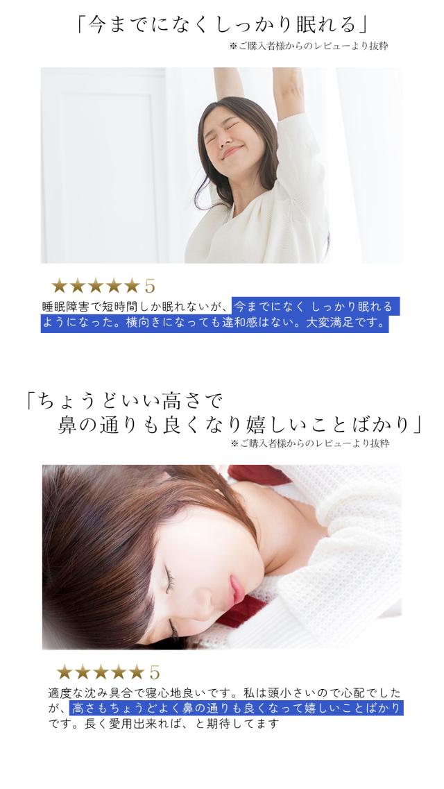 - 硬さ、高さ丁度良くて良く眠れます。 上向きより横向きで寝る方が良いように思います。匂いも気にならないので大変良い買い物をしたと思います。