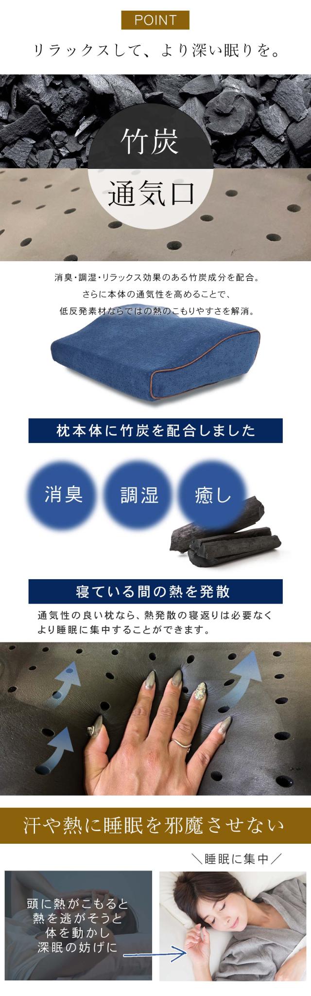 心地よい眠りを追求した低反発枕が進化して新登場!竹炭配合・穴あき加工