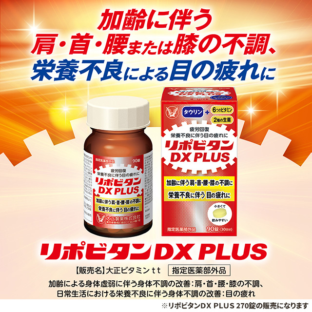 【年齢を重ねて感じる肩・首・腰・膝の不調に】●リポビタンDX PLUSは、「錠剤タイプのリポビタン」です。