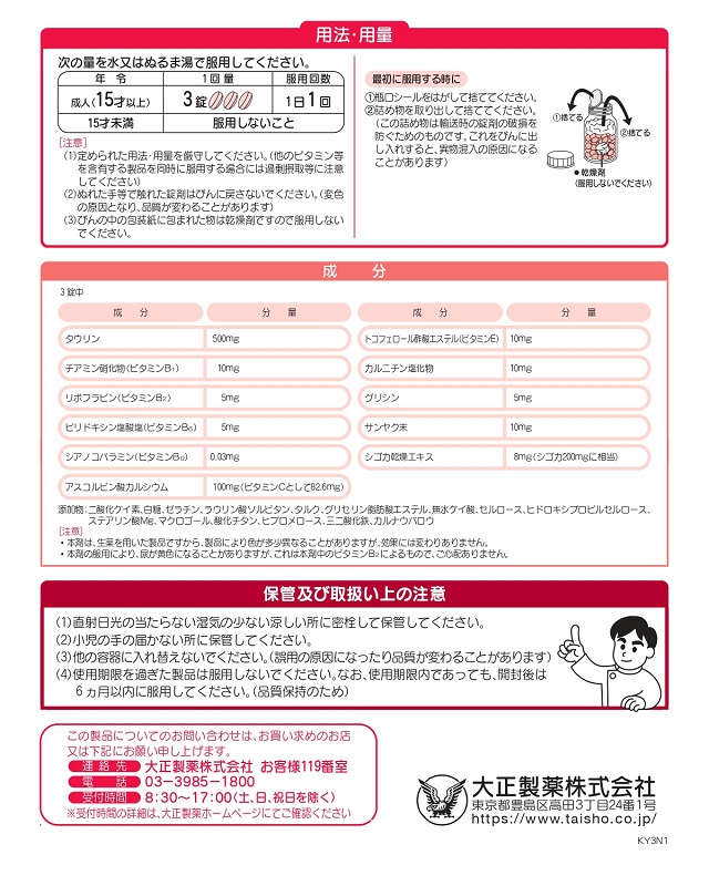 病中病後の体力低下時、発熱を伴う消耗性疾患時、食欲不振時、妊娠授乳期又は産前産後等の栄養補給用法・用量 成人(15才以上)1日1回3錠を水又はぬるま湯で服用してください。