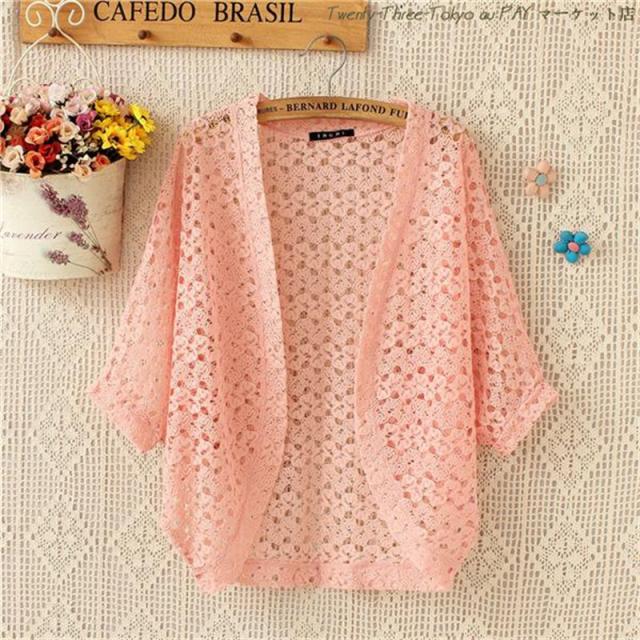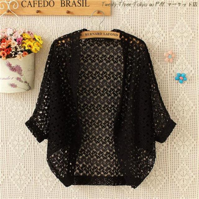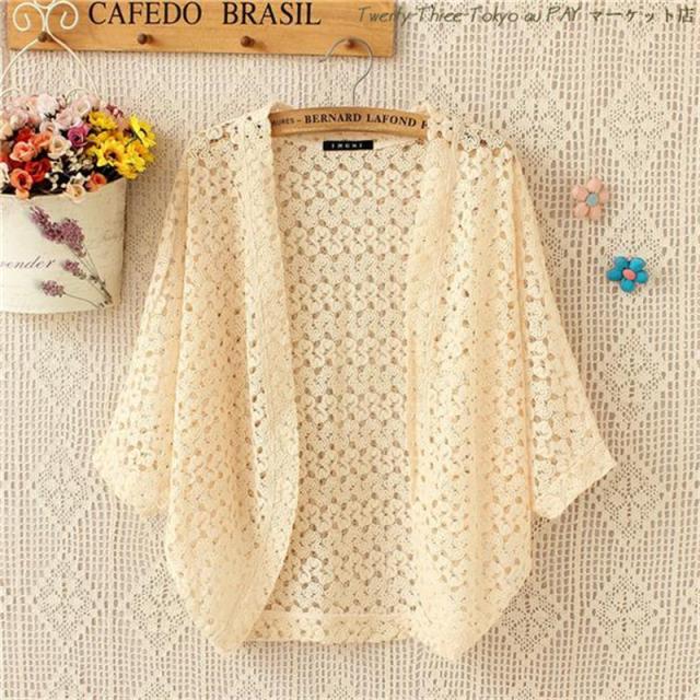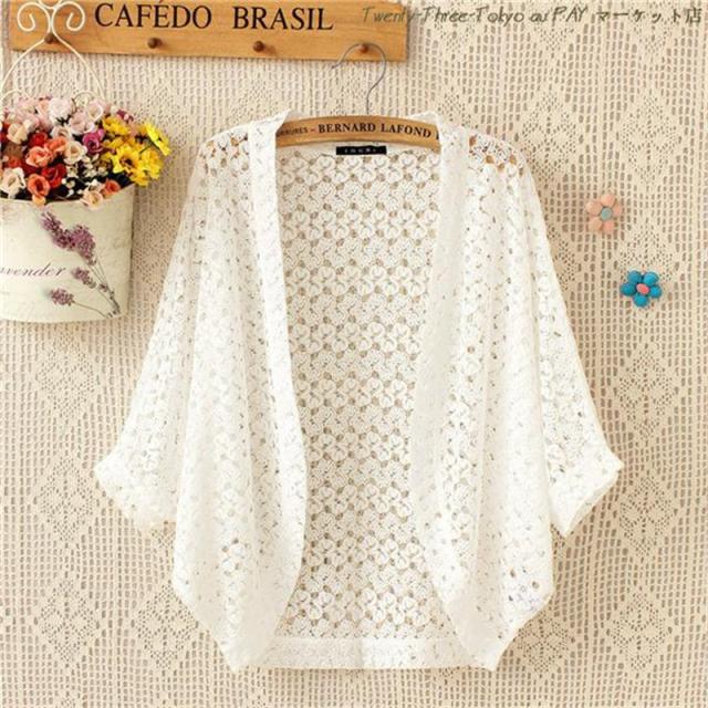 送料無料 ボレロ カーディガン 総レース 可愛い 透かし編み レディース 春 夏 半袖 花柄 ドルマンスリーブ 透け感 紫外線対策 UV防止 おしゃれ 母の日