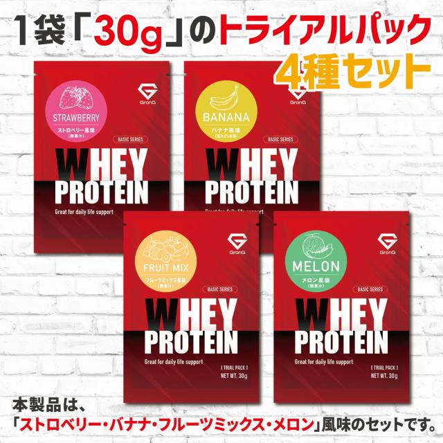 グロング GronG ホエイプロテイン100 ベーシック トライアルパック 30g 4種セット