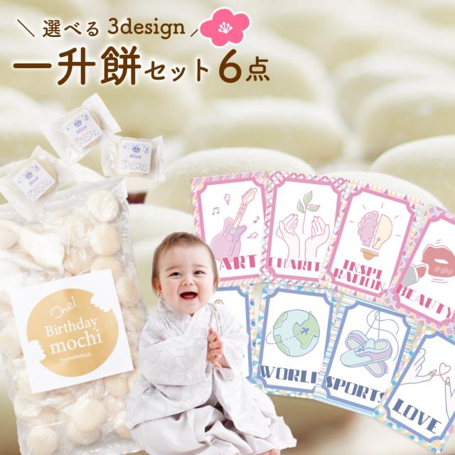| セット内容 | ●小分け餅(1800g) ●選び取りカード(1袋8枚入) ●お名前シール(1シート24片) ●メモリアルカード×1 ●風呂敷×1 ●お祝いの手引書 |