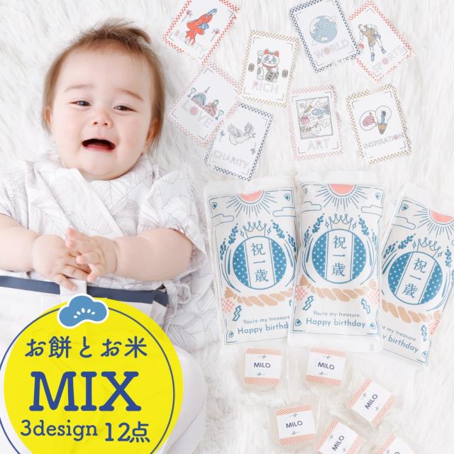 【レビュー特典】一升餅一升米ミックス 12点セット 1歳のお誕生日 タペストリー付き ファーストバースデー 小分け おこめぼー こしひかり 誕生餅