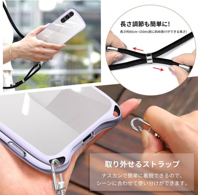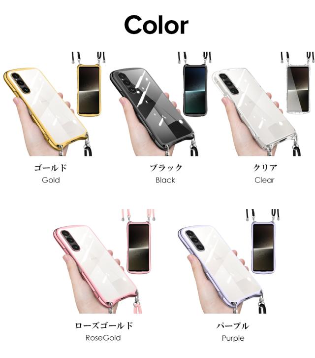 Xperia1 V ケース ショルダー ストラップ付き 背面クリア 耐衝撃 スマホショルダー メッキ加工 TPU カメラ保護 Sony Xperia 1 V SO-51D SOG10 傷つけ防止 スマートフォン ワイヤレス充電 対応 ソニー エクスペリア1 マーク5 カバー スマホケース スマホカバー simフリー