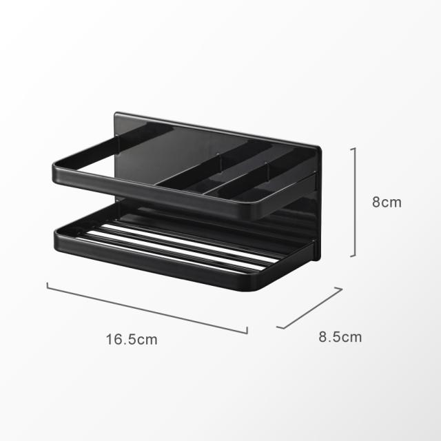 マグネットがつく壁面に簡単取り付けできるスポンジ&ボトルラック。浮かせるのでぬめらず衛生的。置き場所に困るスポンジ2個と食器洗剤ディスペンサーを一括収納できます。