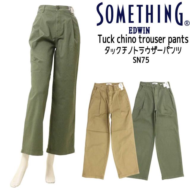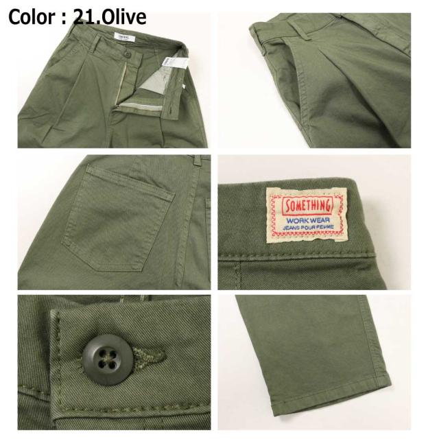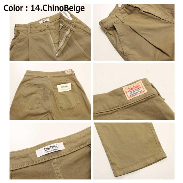 SOMETHING サムシング タック チノ トラウザーパンツ SN75 ストレッチ パンツ スラックス 日本製 ワイドパンツ
