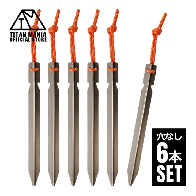TITAN MANIA チタンマニア ペグ チタン製 V字型 穴なし 16cm 6本セット チタンペグ テントペグ タープ 超軽量 強靭 頑丈 設営用具 ソロキャンプ アウトドア用品 キャンプ用品 収納袋付き