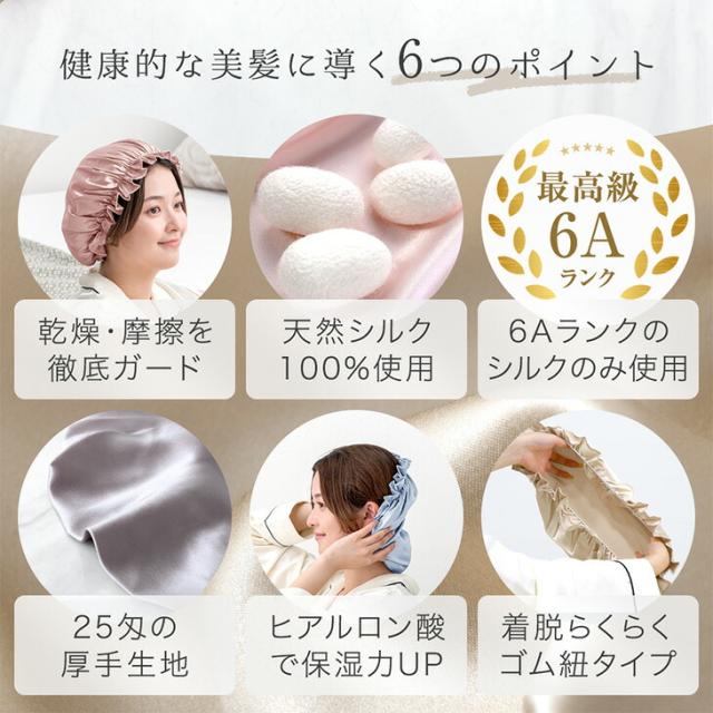 シルクナイトキャップ ヒアルロン酸配合 25匁 6A ナイトキャップ シルク100% シルクキャップ ゴム紐 ショート かわいい レディース 就寝用 シルク製 保湿 ヘアケア プレゼント 髪の毛 うるサラ美髪 うるさら美髪