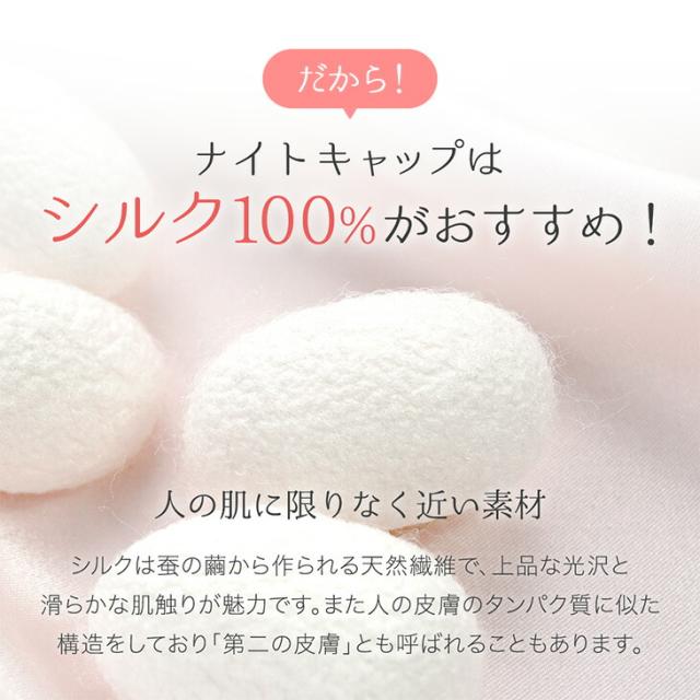シルクナイトキャップ ヒアルロン酸 配合 25匁 天然 シルク100% 6A ランク シルク ナイトキャップ シルクキャップ フリル ゴム ゴム紐 ショート ミディアム かわいい ヘアケア ギフト