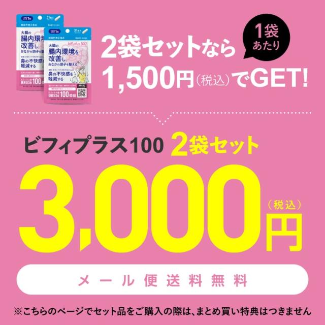| 商品名 | ビフィプラス100 [bifi plus 100] ●配合成分につきましては、上記の商品名をタップしてご確認ください。 |