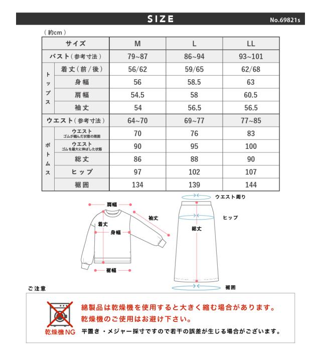 ●トップス仕様:長袖/かぶり式/衿ぐりリブ/袖口リブbr> ●パンツ仕様 :ロングリブハラマキ仕様パンツ/裾口リブ/ウエスト総ゴム/ゴム取替口