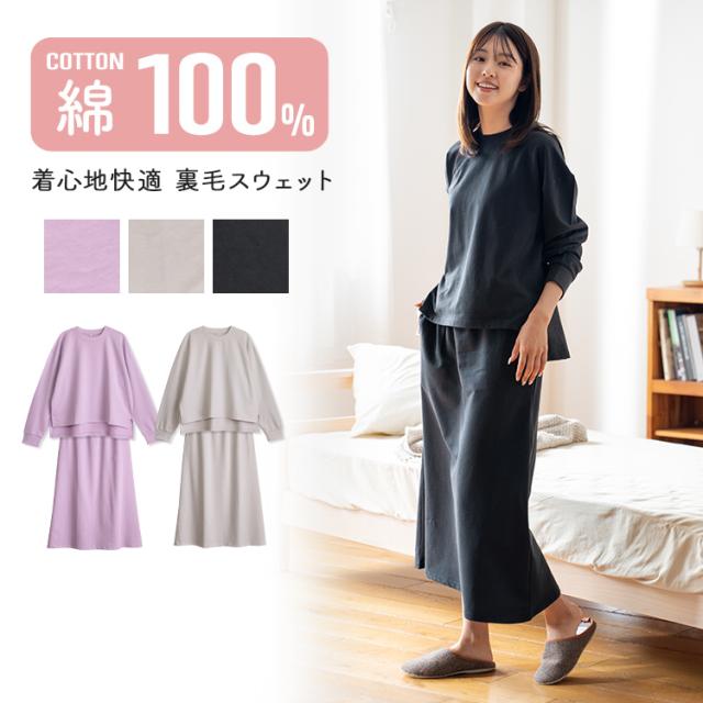 スウェット パジャマ レディース 綿100% 長袖 春 秋 初冬 かわいい フレンチテリー 無地 家族 おそろい M L LL
