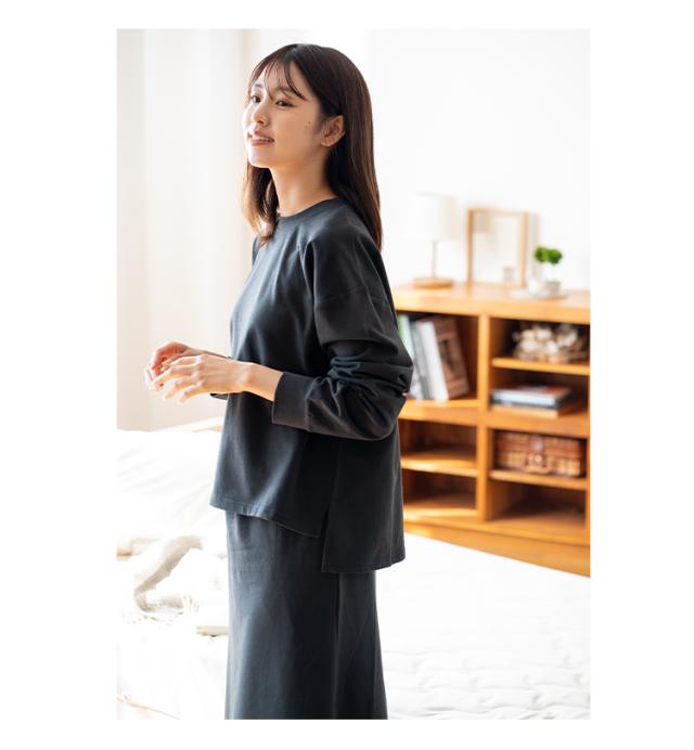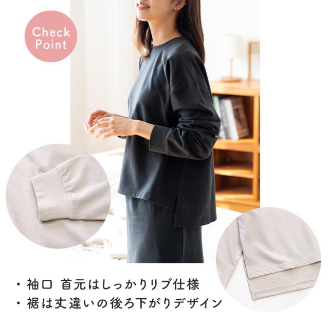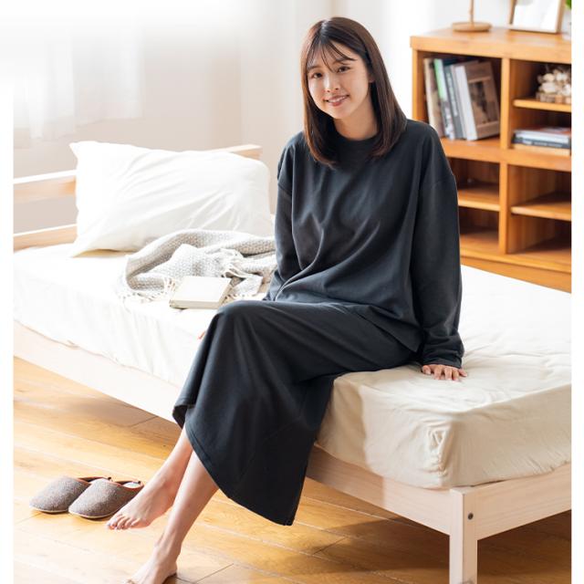 綿100%で出来た滑らかな肌触りの裏毛スウェットパジャマです。