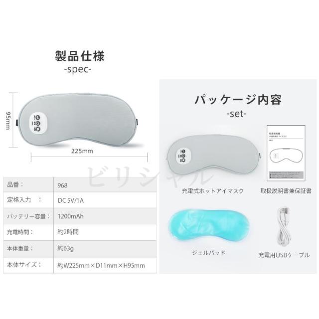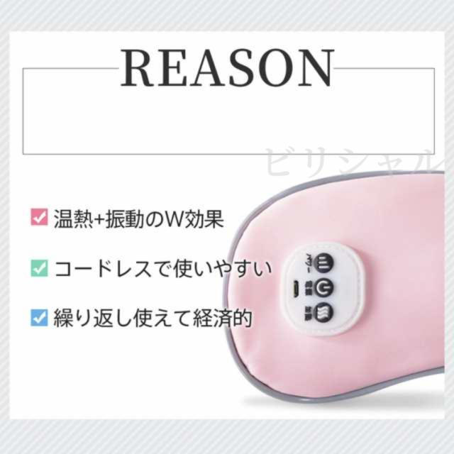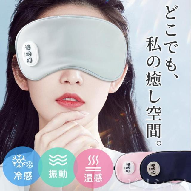 アイマスク 睡眠 ホット温感 冷感 振動 アイマッサージャー usb 充電式 遮光 5段階振動 3段階温熱 自動オフ 日本語説明書付き