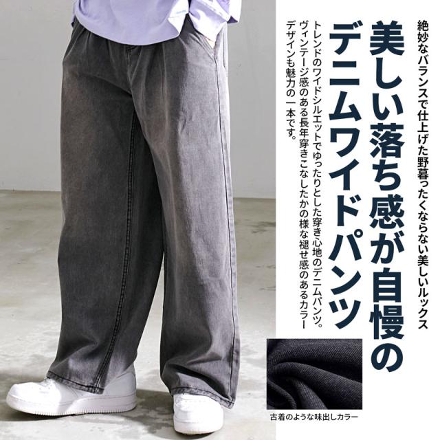 デニムパンツ メンズ ジーンズ ジーパン Gパン 大きいサイズ ワイドパンツ ワイドデニム バギーパンツ 太め ゆったり ブラック ブルー グレー 黒 青 紺 S M L カジュアル CavariA ユニセックス ブランド 20代 30代 40代 男性 男 服 春 夏 秋 冬 ファッション [CARE23-14]