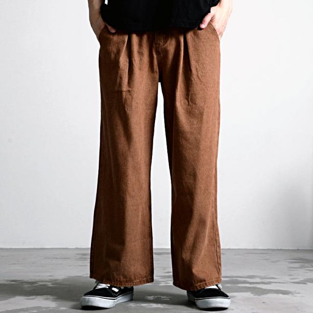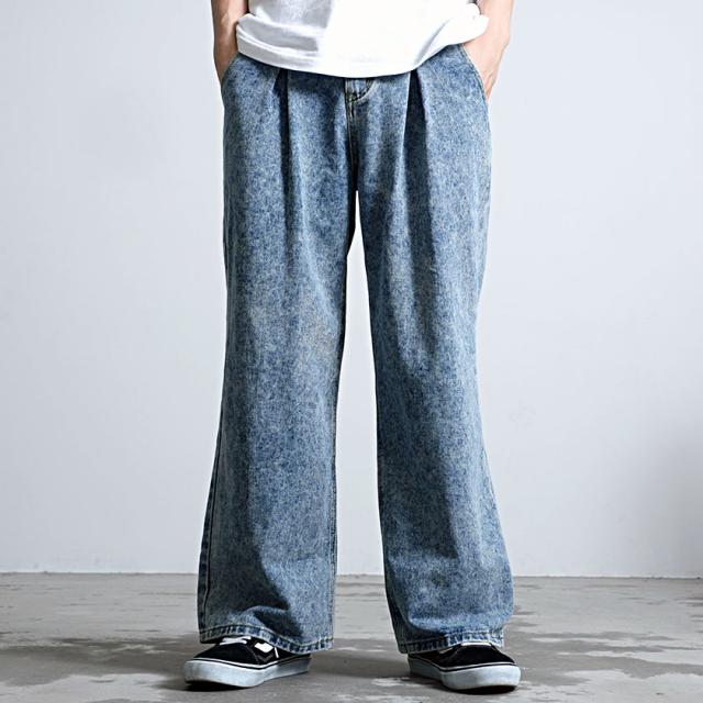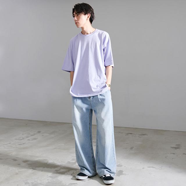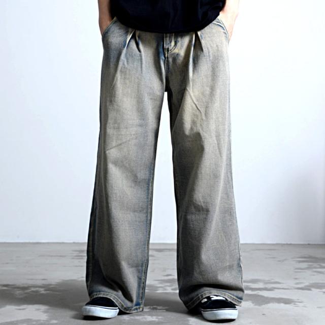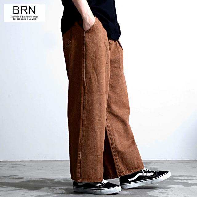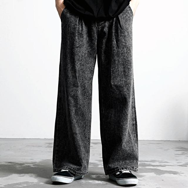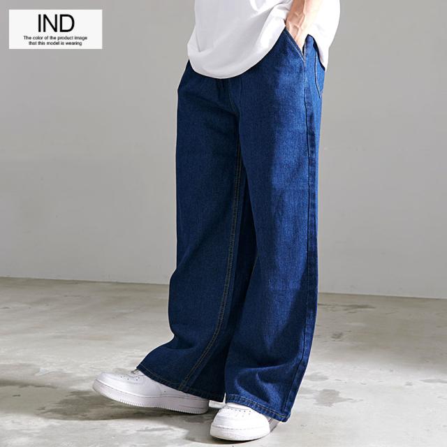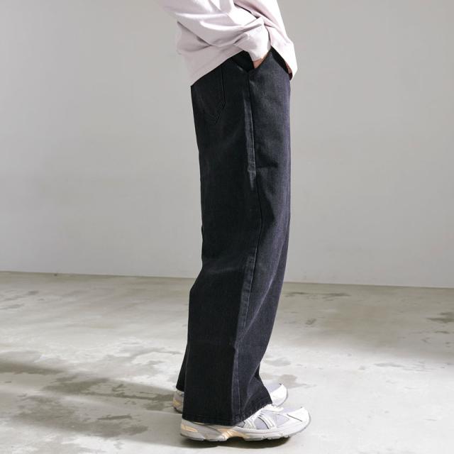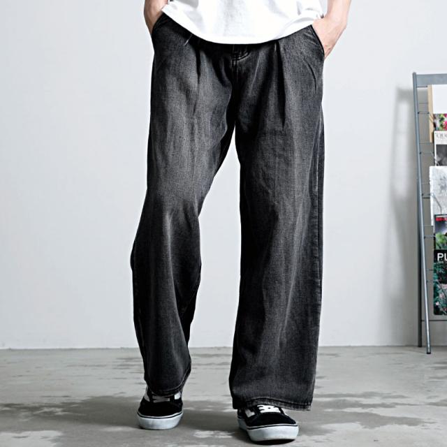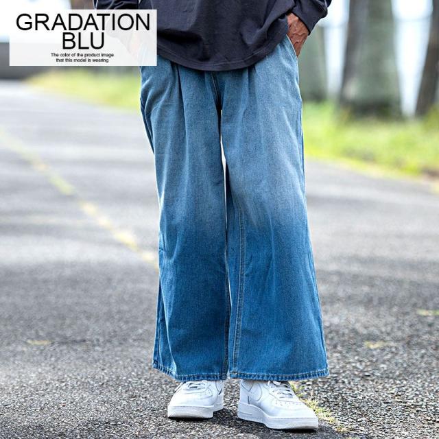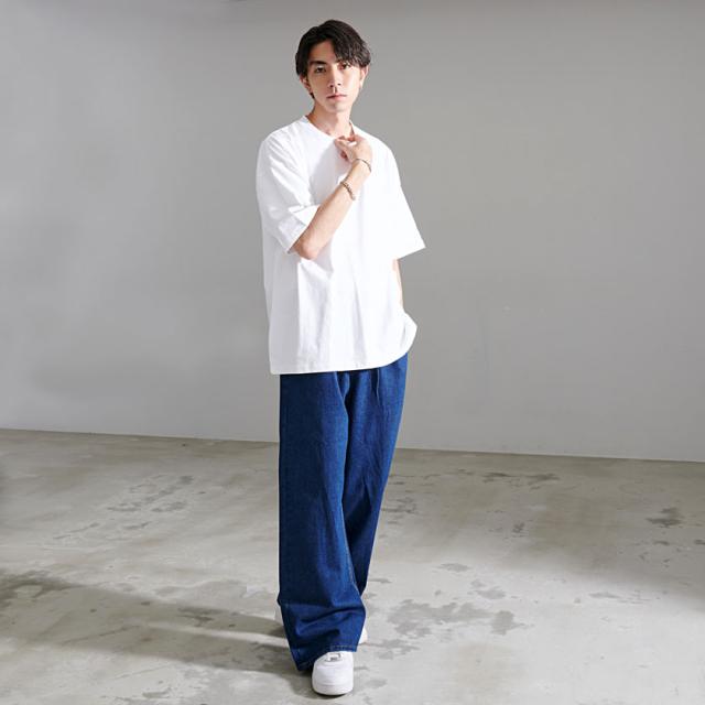ゆったりとしたワイドシルエットに仕上げたデニムパンツ。
