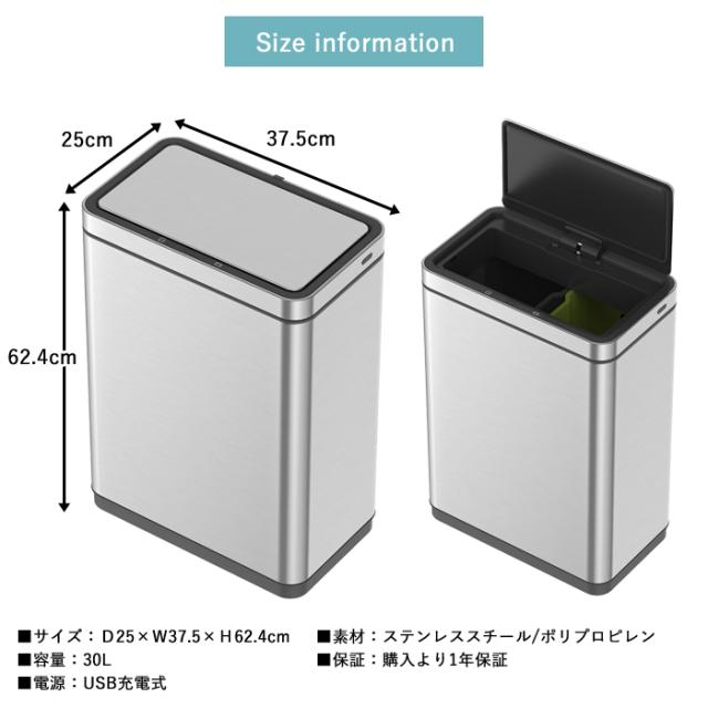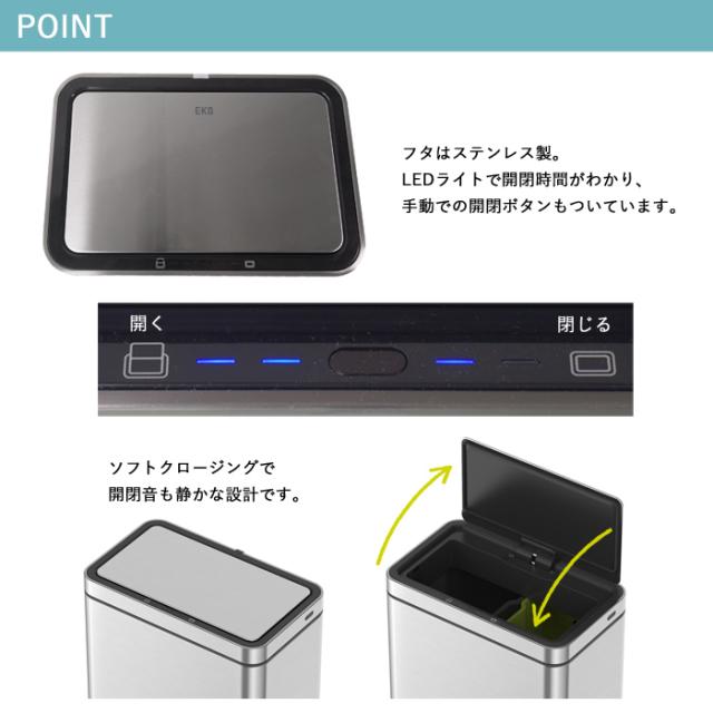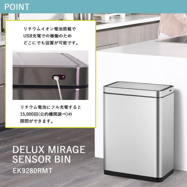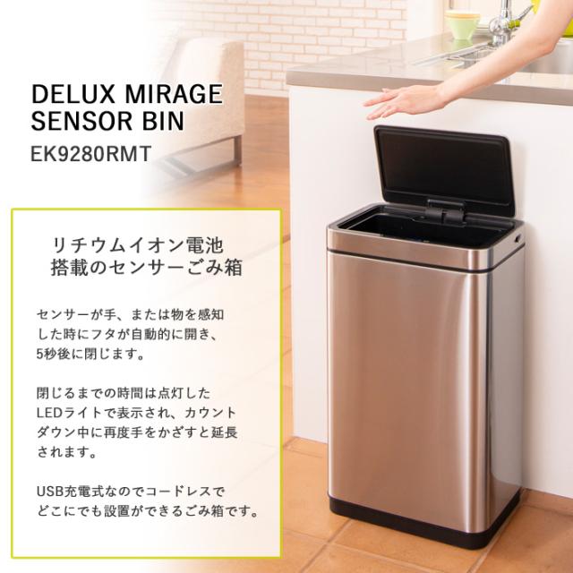 ゴミ箱 EKO 30リットル 自動開閉 センサー式 デラックスミラージュ センサービン 30L EK9280RMT-30L-1218 【送料無料】充電式 電動 ダストボックス ふた付き 清潔 ごみ箱 ステンレス キッチン 台所 オフィス 1年保証 EKO JAPAN 正規代理店