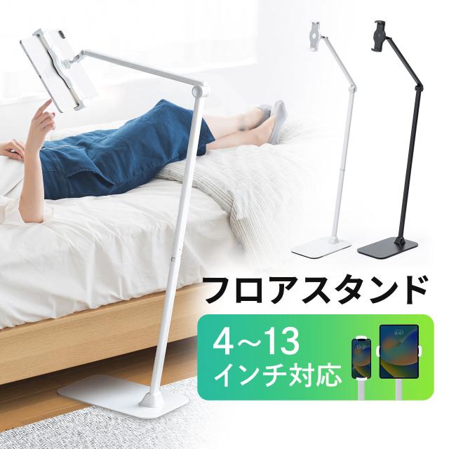 iPad タブレット フロアスタンド アームスタンド 4〜13インチ対応 床置設置 高さ調節可能 360度回転 寝ながら ベッドサイド 動画配信 サイネージ ブラック ホワイト[100-MR200]