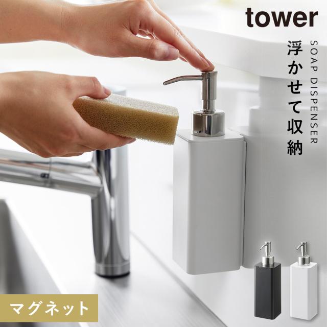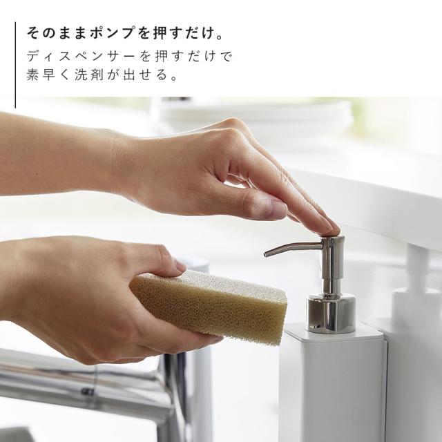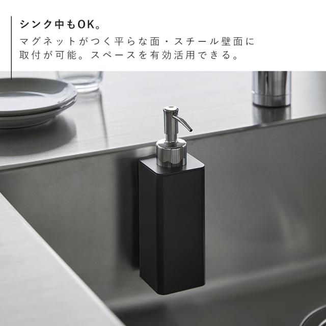 洗剤,ディスペンサー,キッチン洗剤,食器洗い洗剤,ボトル,詰め替え,容器,マグネット,磁石,シンク,キッチン,台所,山崎実業,tower,タワー,TOWER,ホワイト,ブラック,白,黒,モノトーン,山崎,yamazaki,生活感が出ない,すっきり,コンパクト,省スペース,シンプル,シンプルデザイン,シンプルインテリア,スタイリッシュ,北欧,おしゃれ,お洒落,オシャレ,インテリア,雑貨,部屋,賃貸,マンション,トータルコーディネート,新生活,整理整頓,壁,壁掛け,壁面,浮かせる,浮かせる収納,空中収納,簡単設置,