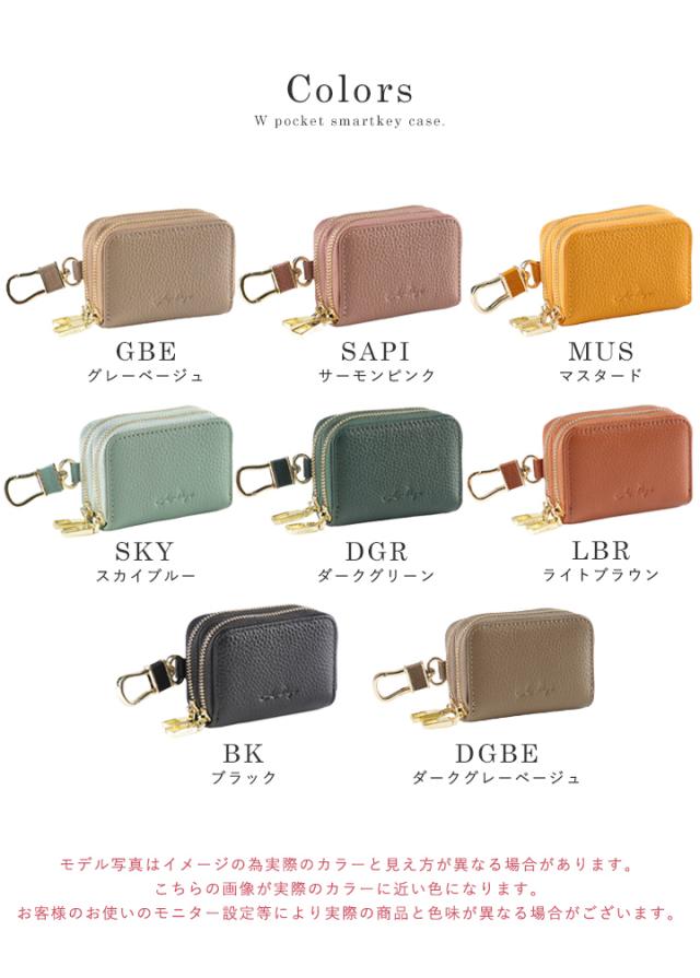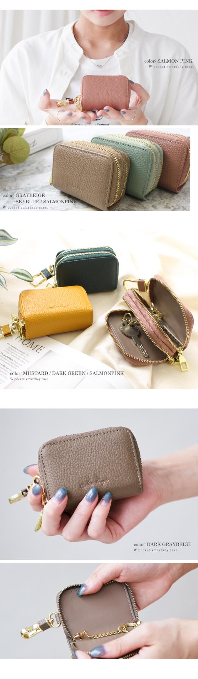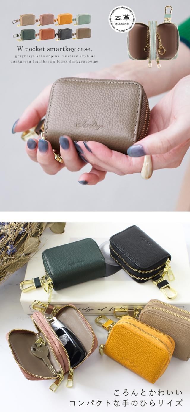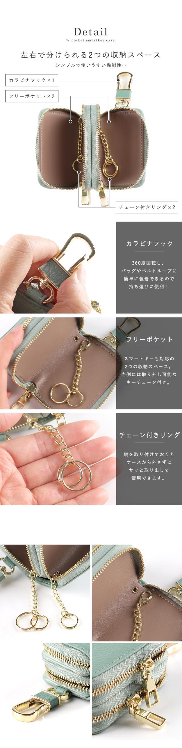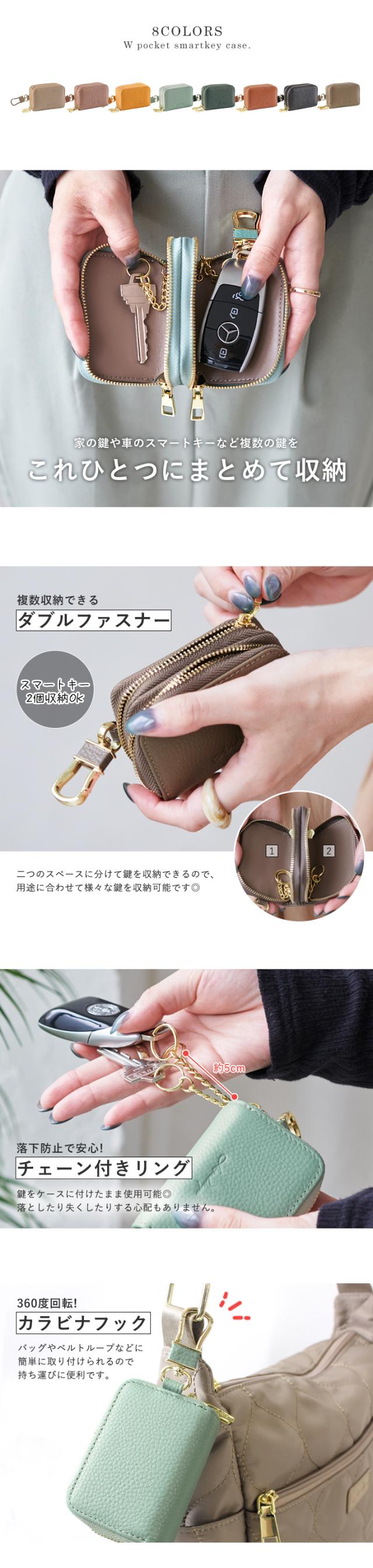 スマートキー 2個収納 ケース 本革 キーケース スマートキー ケース ダブルファスナー キーケース レディース カラビナフック 上質 牛革 ファスナー チェーン付きリング コンパクト お洒落 高見え LIZDAYS リズデイズ スタイルオンバック【lz-68108】
