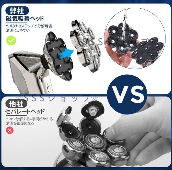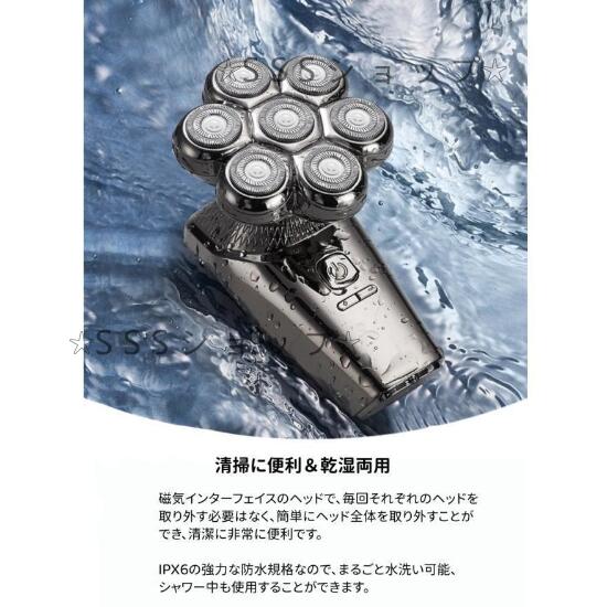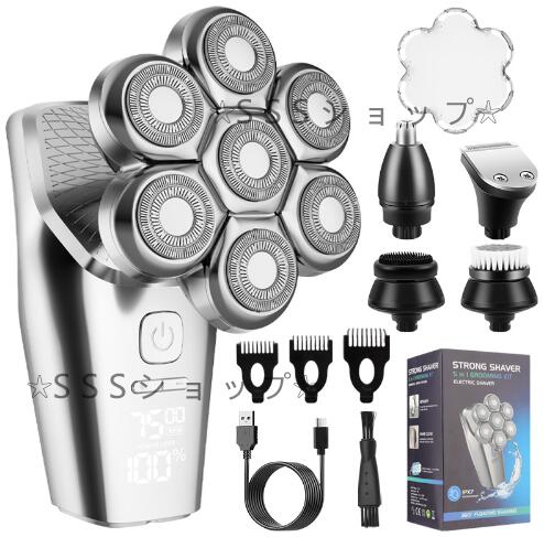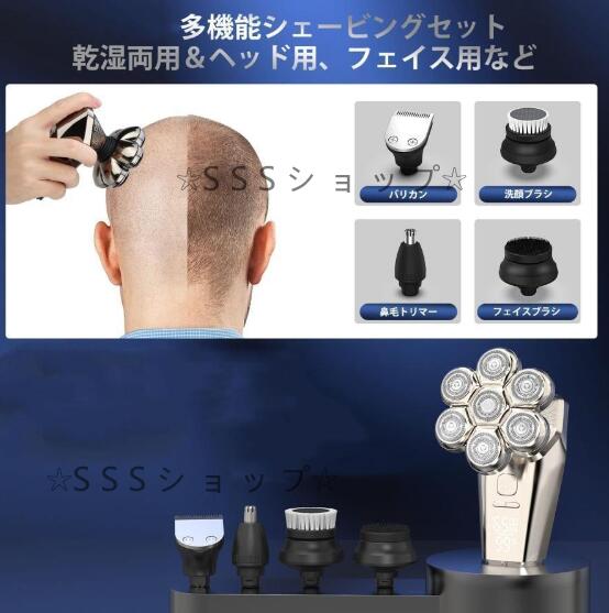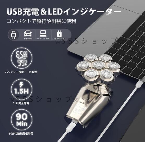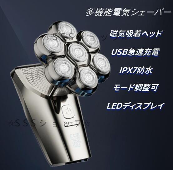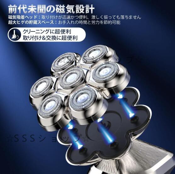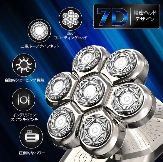スキンヘッド 電気シェーバー 7D 磁気インターフェース式 スキンヘッド用 バリカン ひげそり 電動 メンズシェーバー USB充電式