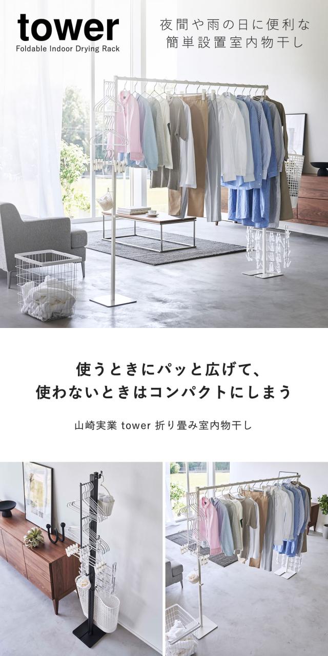 山崎実業 tower 折り畳み室内物干し タワー ( 4903208066198 タワーシリーズ 折り畳み おりたたみ 部屋干し コンパクト 洗濯 室内物干し tower 山崎実業 洗濯干し 室内 物干し 室内 洗濯物干し 室内 折り畳み 室内物干し 折りたたみ 物干しスタンド 室内 室内物干し)