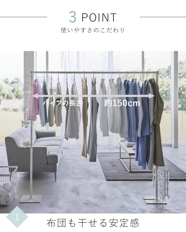 重さ7.9kgと安定感のある重量に、ハンガーパイプの長さは約150cmと、大量の服や布団も干せるサイズです。