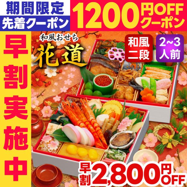 \1200円クーポン/ おせち 2026 おせち料理 早割 【花道】 2人前 3人前 全43品 8寸 予約 2026年 おせち3人前 お節料理 お節 御節 osechi oseti 和風 冷凍 美味しい おいしい 冷凍おせち 本格 定番 純和風 ギフト アワビ 鮑 海の幸 山の幸 蔵王福膳
