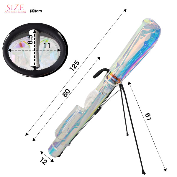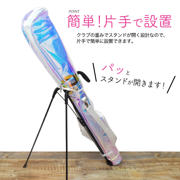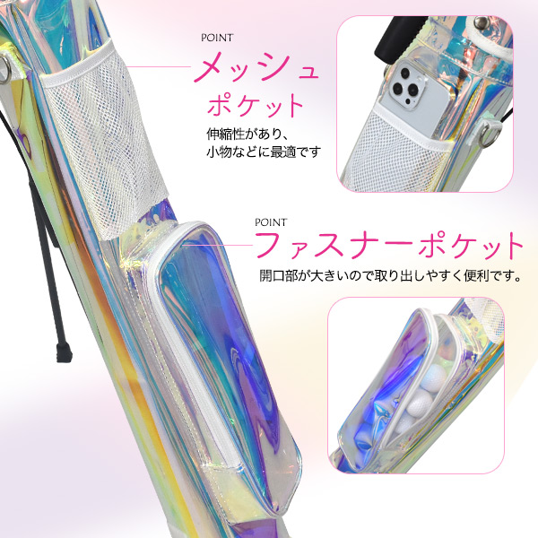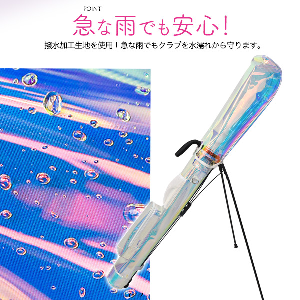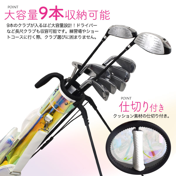 セルフスタンド ゴルフクラブケース オーロラカラー 9本収納 軽量 クラブ9本収納可 約1kg 撥水加工 ゴルフ用品 練習場 ショートコース ゴルフ 練習用 自立式 収納ポケット 2種類の収納ポケット レディース メンズ かわいい 人気 オシャレ 送料無料