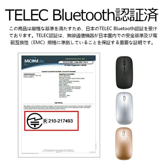 【ランキング1位12冠達成】マウス ワイヤレス Bluetooth マウス 無線 静音 薄型 PCノートパソコン ワイヤレス TELEC Bluetooth認証済 電池交換不要 バッテリー内蔵 マウス 充電式 光学式