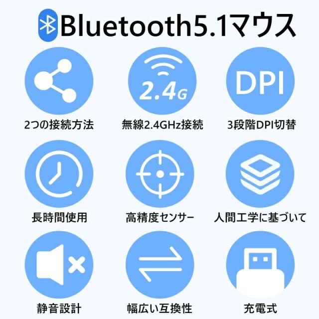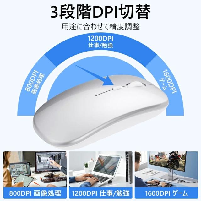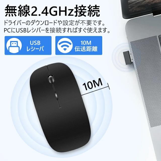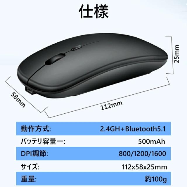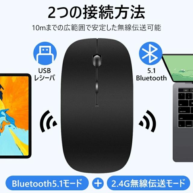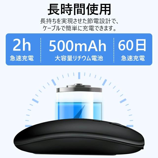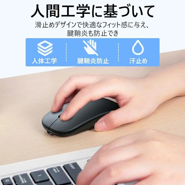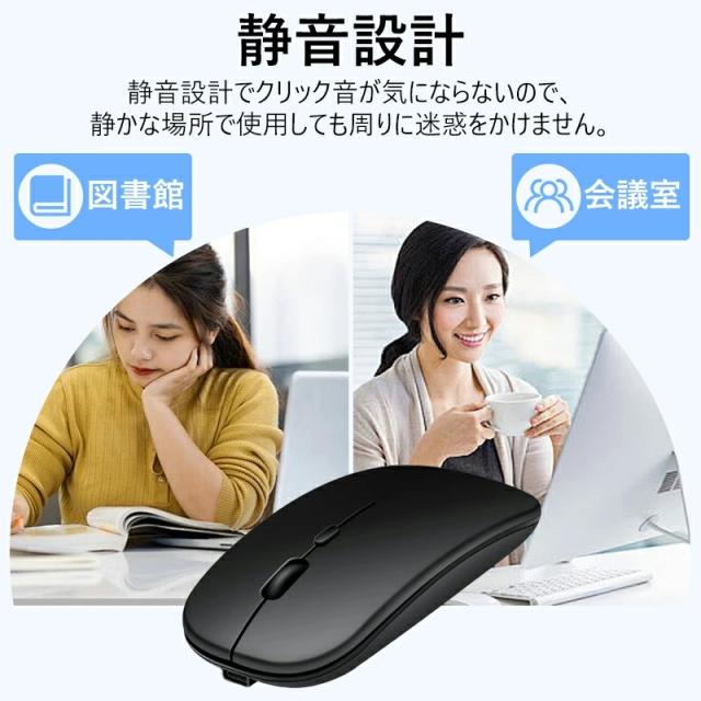【ランキング1位12冠達成】マウス ワイヤレス Bluetooth マウス 無線 静音 薄型 PCノートパソコン ワイヤレス TELEC Bluetooth認証済 電池交換不要 バッテリー内蔵 マウス 充電式 光学式