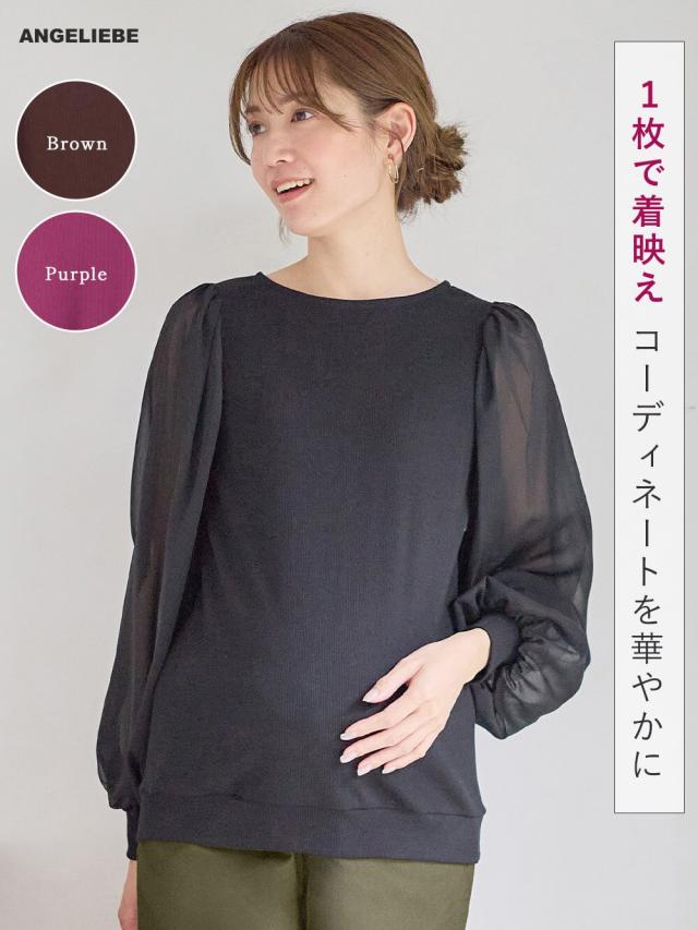 袖シアーニットプルオーバー マタニティ・授乳服【出産後も長く使える】