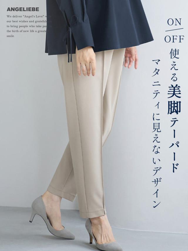 マタニティ パンツ オフィス フォーマル アジャスター センター シーム ストレッチ テーパードパンツ ズボン ボトム 美脚 仕事服 妊婦 妊娠