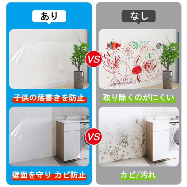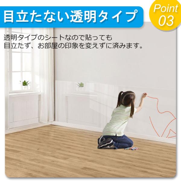 貼るだけで汚れや傷から壁を守るシートです。いたずら盛りりの小さなお子様やペットがいるご家庭でも綺麗な壁を保てます。透明タイプのシートなので貼っても目立たず、お部屋の印象を変えずに済みます。シートがペットによるひっかき傷、汚れやキズから壁などを守ります。貼ってはがせるから使いやすく、貼り直しも簡単です。賃貸にも◎汚れたらさっと拭き取り、お手入れもらくらく!壁のほか、ドアや家具・スイッチまわりなどの汚れ、お子様のらくがき防止にも大活躍。お部屋を汚さず傷めずキレイな空間で、人もペットも快適な生活を過ごせます。
