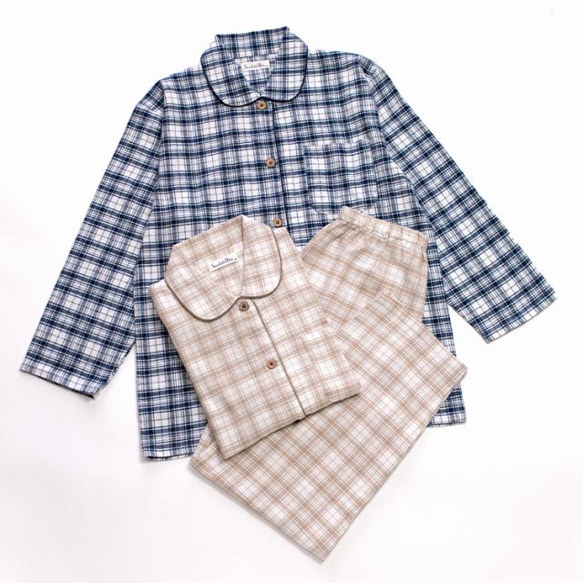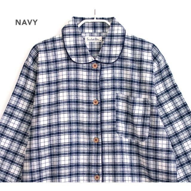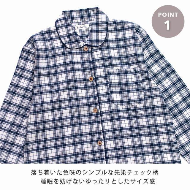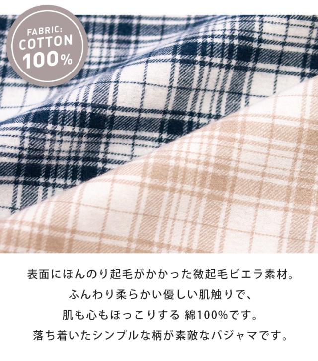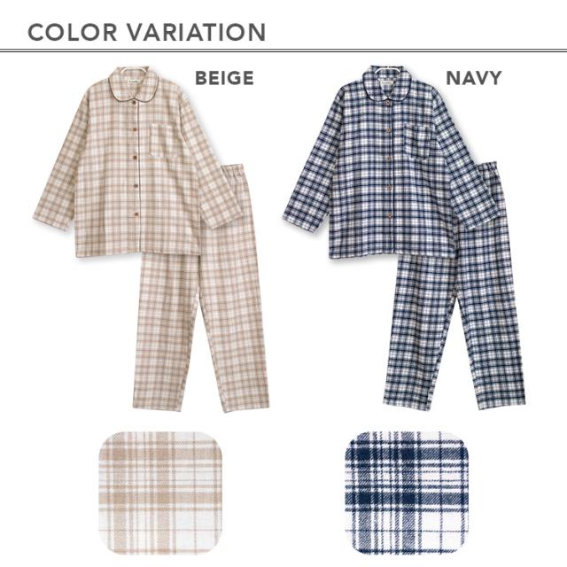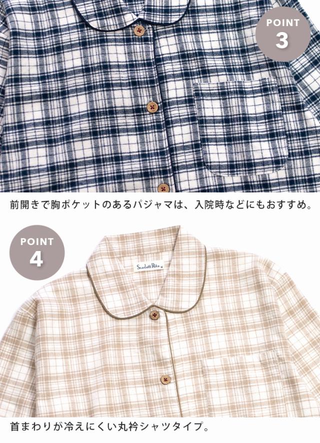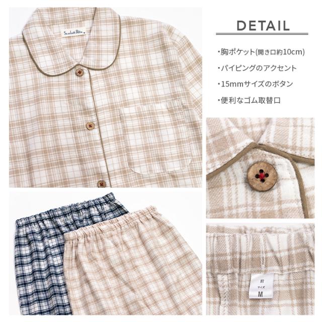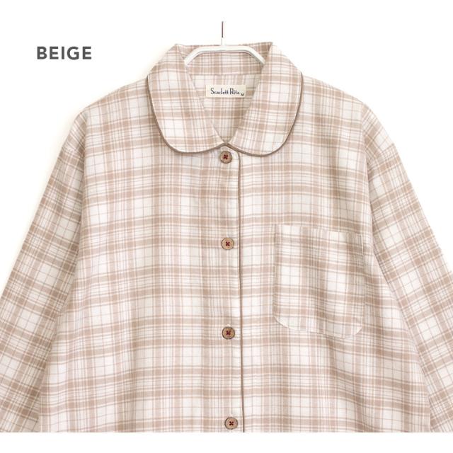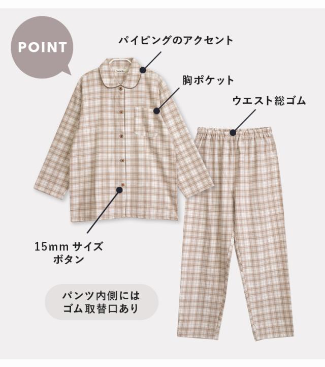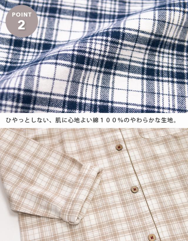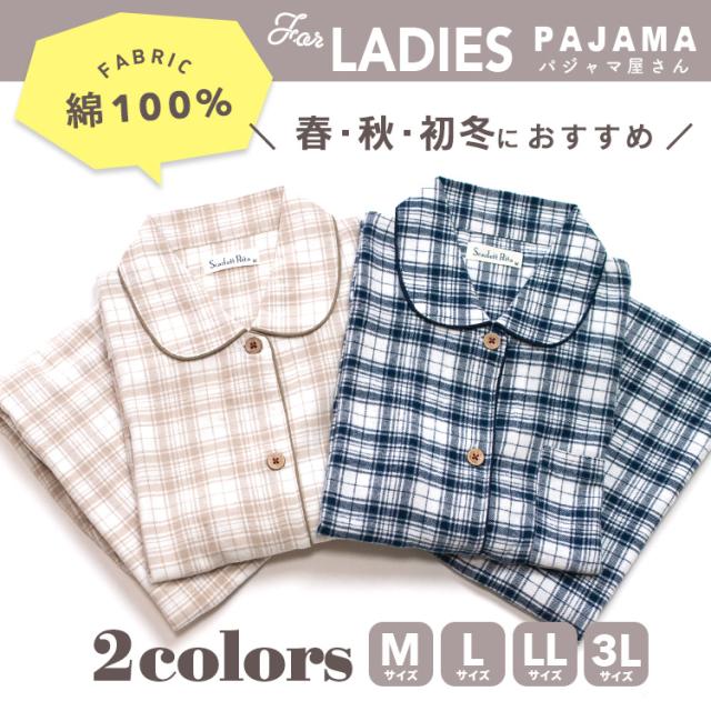パジャマ レディース 綿100% 長袖 春 秋 前開き ボタン 先染 起毛 チェック柄 ベージュ ネイビー M L LL 3L かわいい おそろい