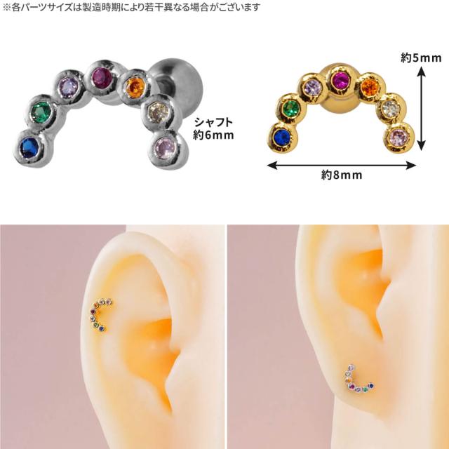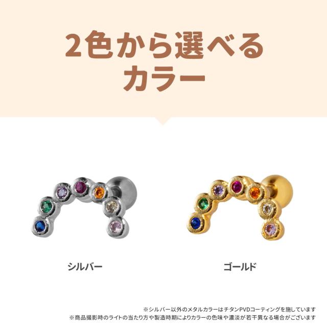 7連 ラウンド ジュエル レインボー ストレートバーベル 14G 16G 18G 20G サージカルステンレス ヘリックス 軟骨ピアス ボディピアス 虹