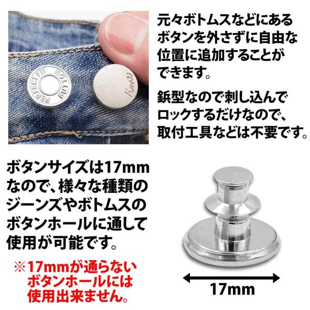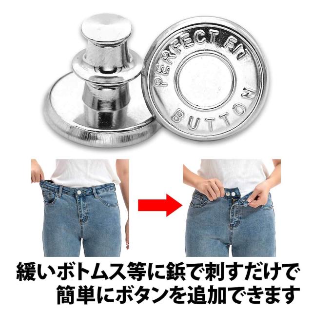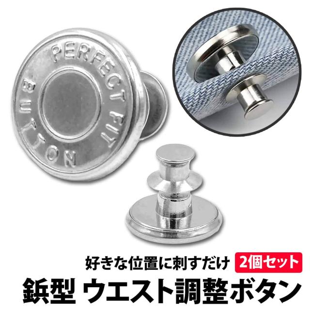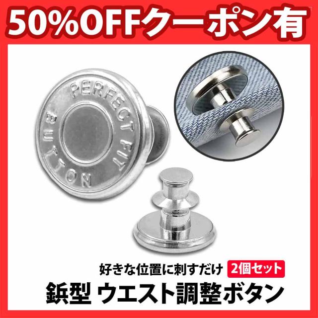 50%offクーポン有 ウエスト 調整ボタン シルバー 2個 セット ピンタイプ ウエストアジャスター スタッドボタン ジーンズ スカート ウエスト調整 ゆるゆる 小さく スッキリ 簡単 取り付け パンツ スラックス 詰め ピン 針 縮める サイズ直し サイズお直し ボタン