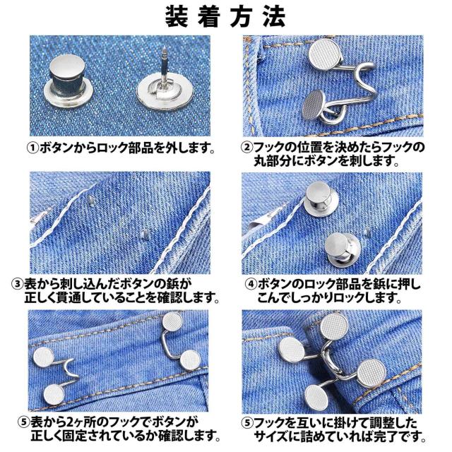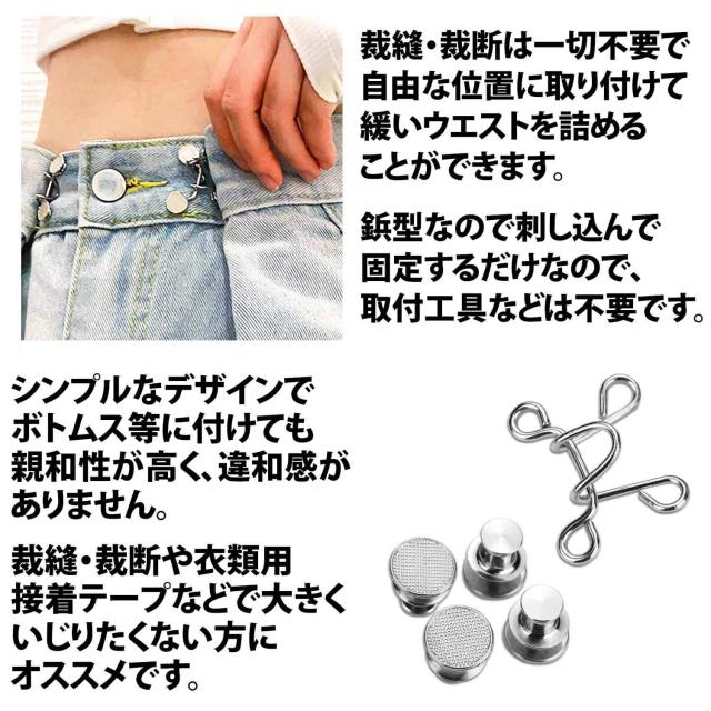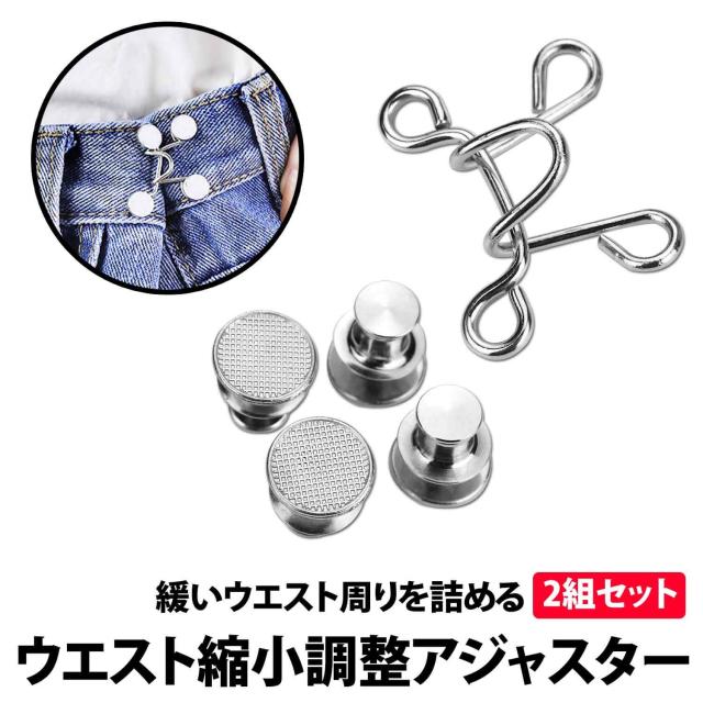 50%offクーポン有 ウエストアジャスター 2組 セット ジーンズ パンツ ズボン デニム ボタン ウエスト調整 スカート パンツ スラックス アジャスターボタン 取り付け クリップ ピン 詰め ゆるゆる すっきり アクセント フック サイズ直し ズボンサイズ直し セルフお直し
