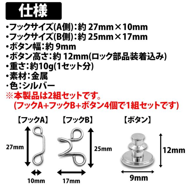※本製品は2組セットです。(フックA+フックB+ボタン4個で1組セットです)
